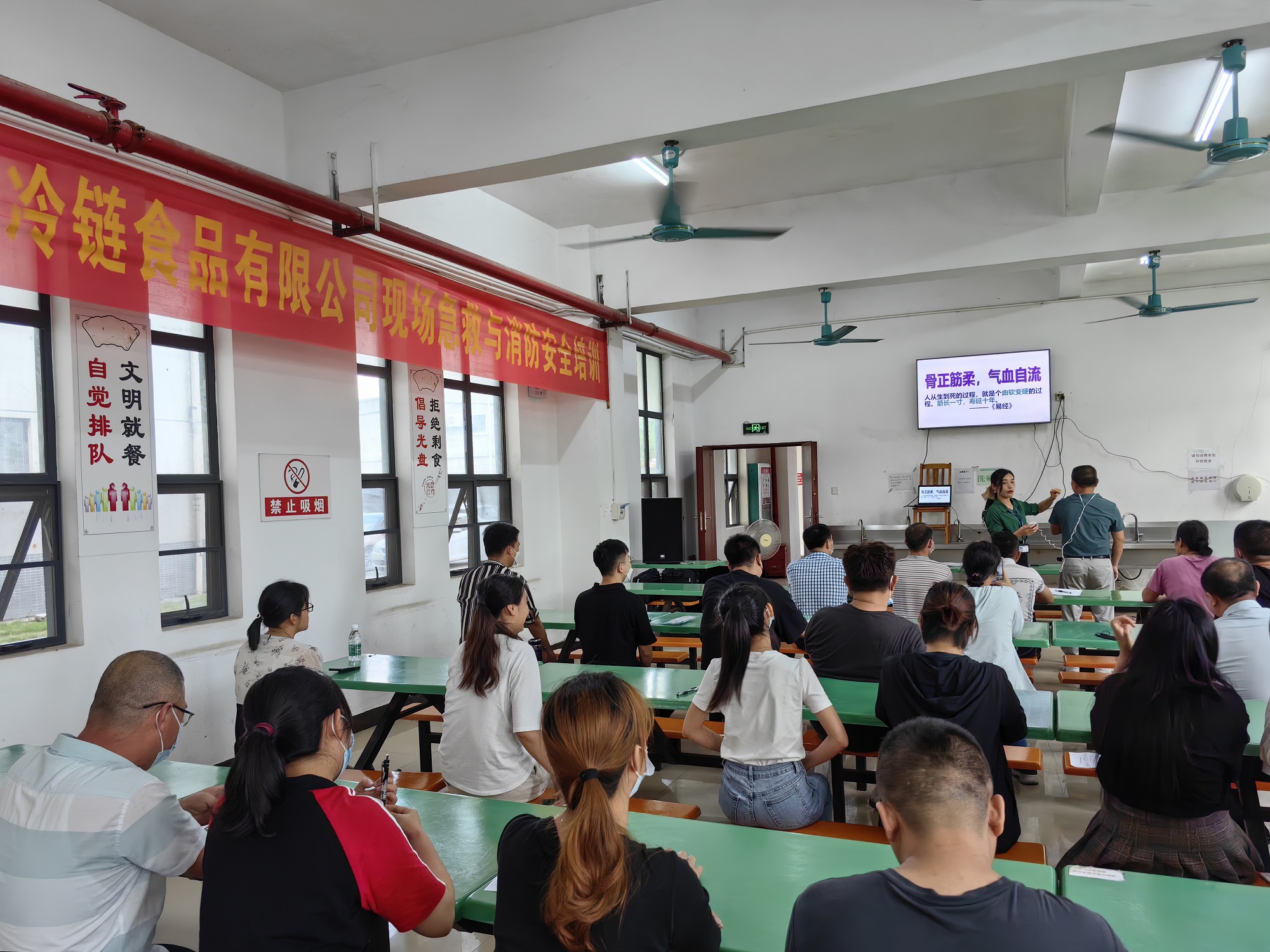 為推動學習貫徹習近平新時代中國特色社會主義思想,進一步貫徹落實黨的二十大精神和習近平總書記關于安全生產(chǎn)重要論述,以安全生產(chǎn)促進公司高速發(fā)展。5月25日,北海冷鏈公司在員工食堂開展了現(xiàn)場急救與消防安全培訓,公司領導干部職工以及租戶企業(yè)從業(yè)人員共60余人參加了本次培訓。