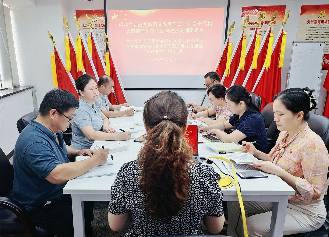 為學習貫徹黨的二十大精神,促進黨員學思想、強黨性、重實踐、建新功,將學習成果轉化為強大動力和工作實踐。7月14日,經貿和天桃聯合黨支部組織黨員圍繞“堅定文化自信 建設文化強國”主題開展學習研討。